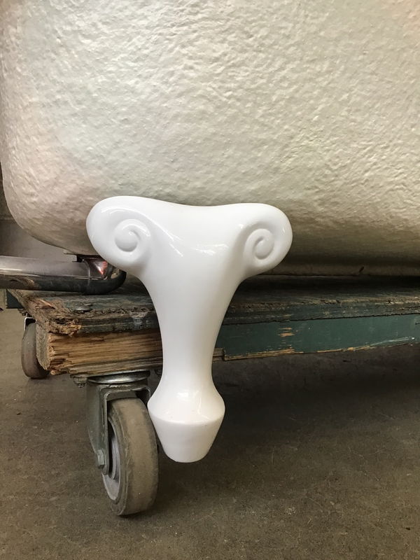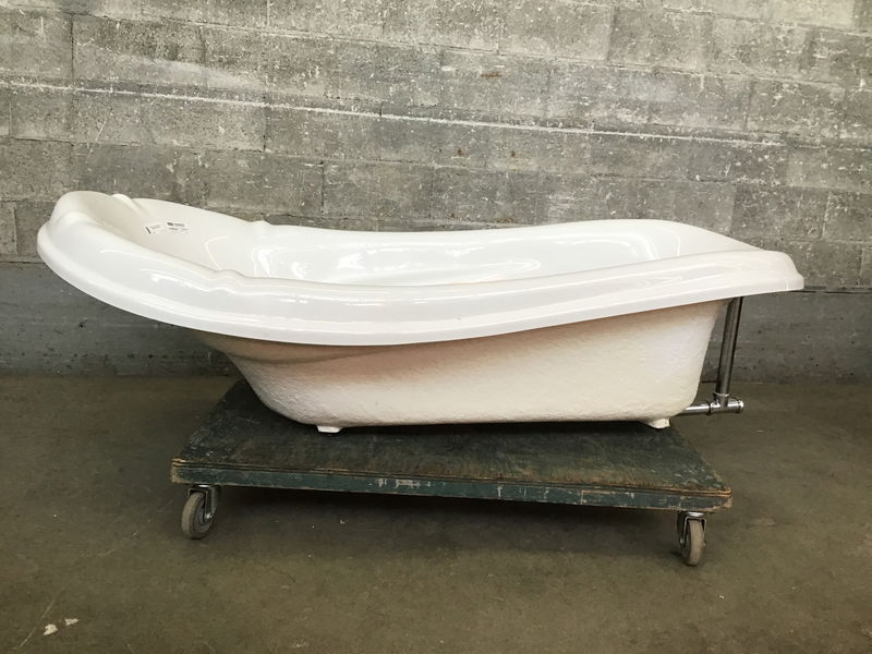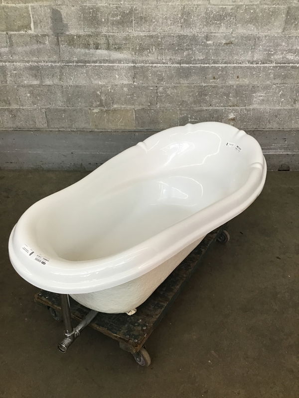 Acrylic clawfoot soaker tub by American Standard. Looks to have been lightly used but is free of damage beyond a few small bits of house paint along one edge. The claw feet are white powdercoated steel. Full specs available here.