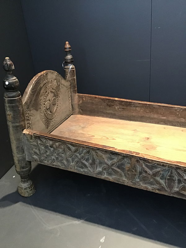 Traditionally in Islam, prayer mats are used in daily prayer, however in the Hindu Kush Mountain region of Pakistan and some parts of Afghanistan, in the Swat Valley, the people there used wooden boards in their prayer. Due to the abundance of Himalayan Cedar in the area these prayer boards were used. Pointed at the top to point towards Mecca during the 5 Islamic prayer times and rested against the wall outside of prayer. Hand carved with incredible details and still in fantastic shape. Most likely from the mid 1800s, this is a very special and beautiful antique piece of cultural significance for Islamic people.