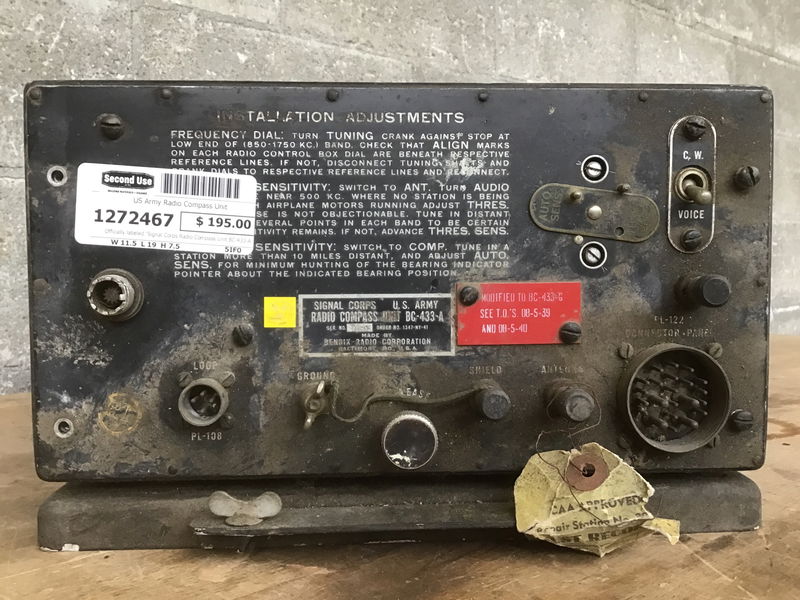 Officially labeled "Signal Corps Radio Compass Unit BC-433-A". This radio compass was used to find the direction of a radio signal. Made by Bendix Radio Corporation. Not sure what year it was made.