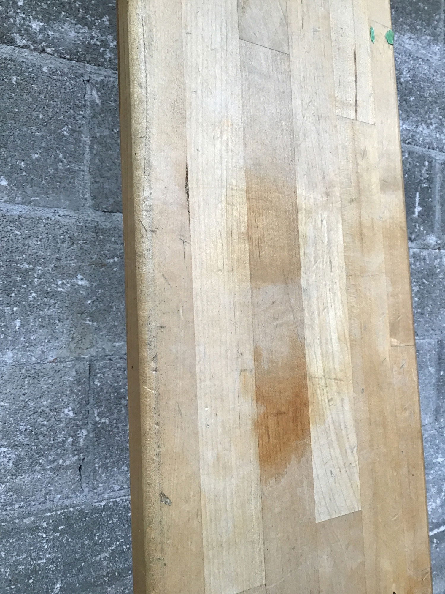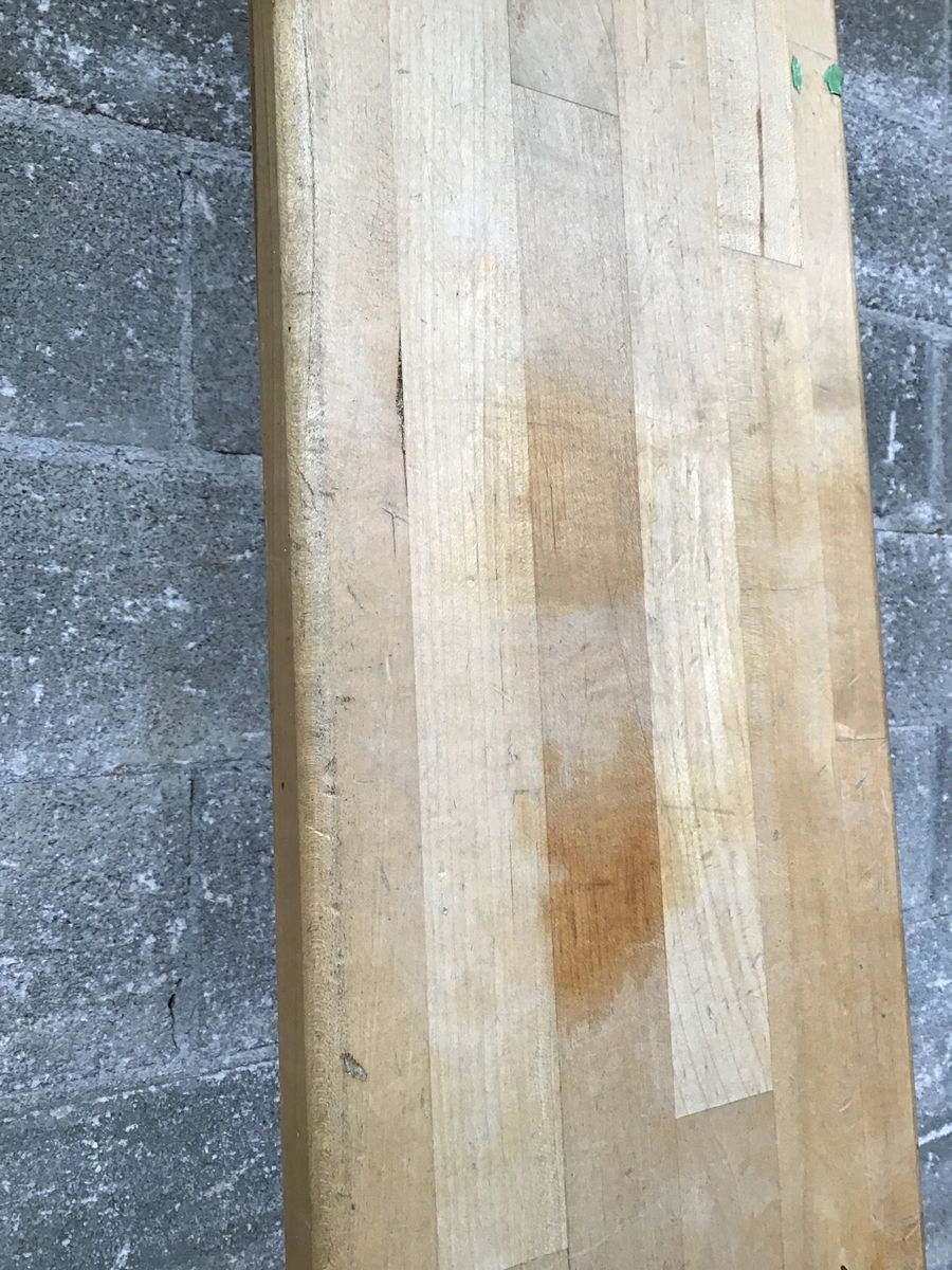 Maple locker room bench seat that's finished on all sides and overall in great shape. Has a few screw holes on one side and light general scuffs and dings from years of butts and feet crawling all over it. May have graffiti, gum, etc.