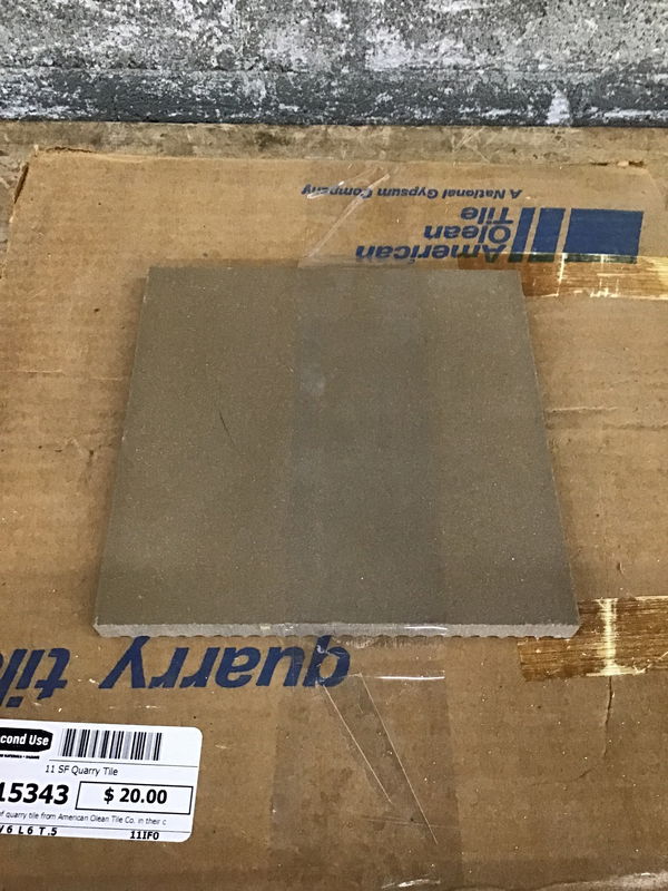 1 box of quarry tile from American Olean Tile Co. in their color "Fawn Gray."
