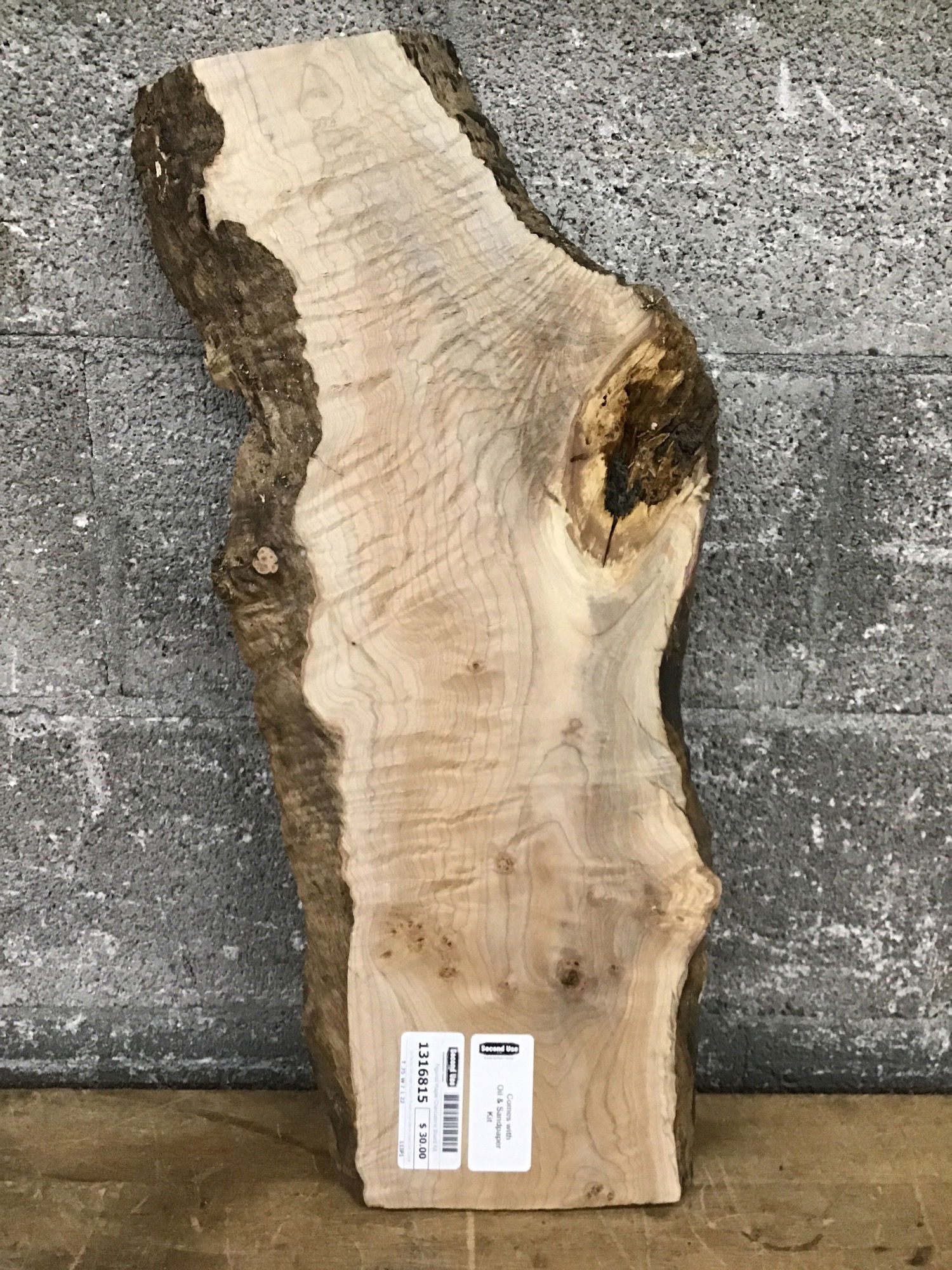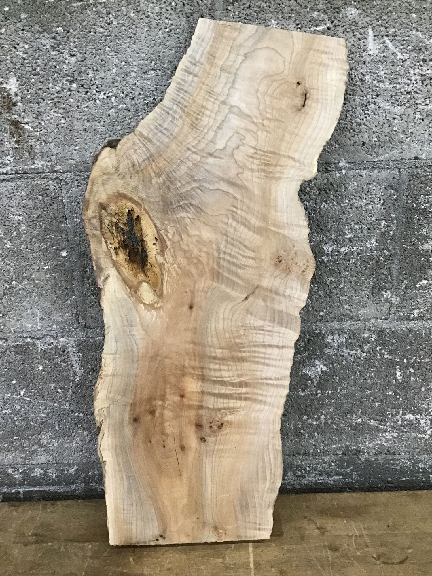 Surfaced live edge figured Maple charcuterie board kit. Comes with food safe oil/sandpaper/instructions. This slab was locally milled from an heirloom Maple tree that grew on the grounds of Foster Golf Links in Tukwila. Has cured in dry storage for over a decade. The tree had been storm damaged too many times over the years and had to be taken down. The whole tree was incredibly figured and developed some crazy spalting. At the time it was the oldest Maple in Tukwila. This slab has been planed flat.