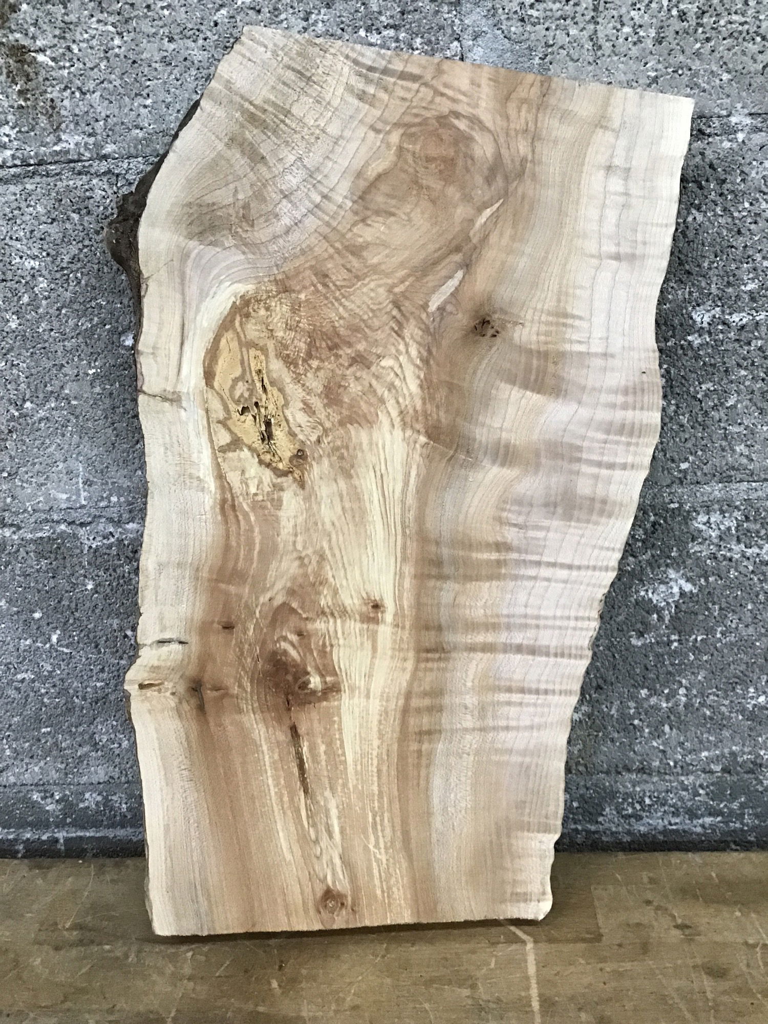 Surfaced live edge figured Maple charcuterie board kit. Comes with food safe oil/sandpaper/instructions. This slab was locally milled from an heirloom Maple tree that grew on the grounds of Foster Golf Links in Tukwila. Has cured in dry storage for over a decade. The tree had been storm damaged too many times over the years and had to be taken down. The whole tree was incredibly figured and developed some crazy spalting. At the time it was the oldest Maple in Tukwila. This slab has been planed flat.