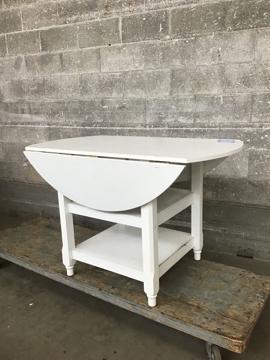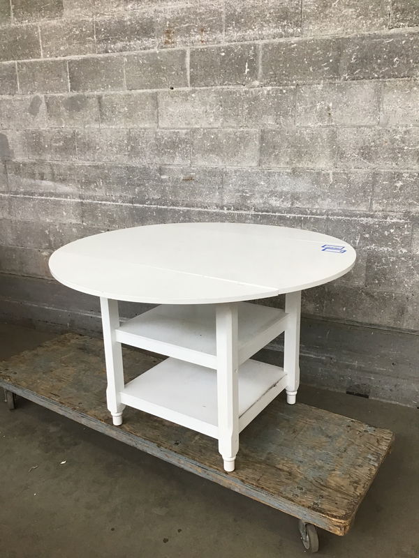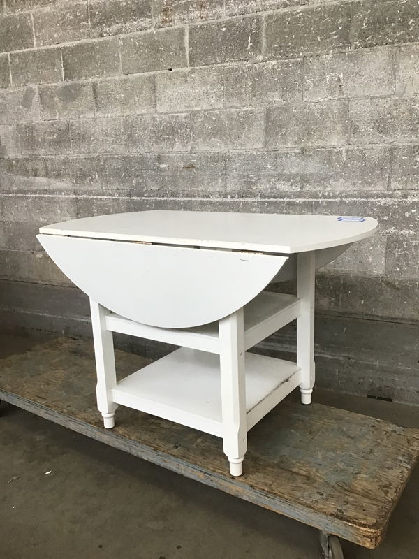 Here we have a very pastoral cottage core kitchen table with two extendable leaves. It looks like it could do with some reenforcing where the leaves extend, but does come with two beams to keep extended. This would make a good breakfast nook table or even a patio table in a weather protected area.