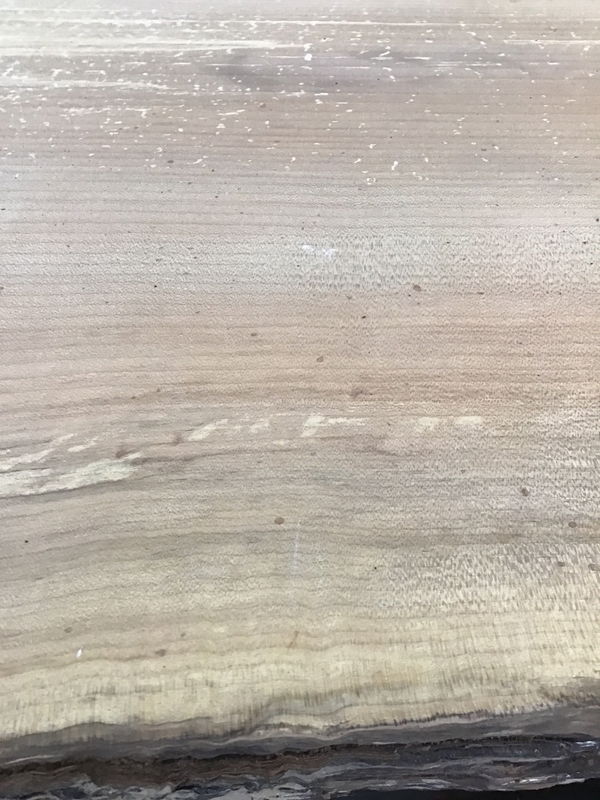Locally milled and kiln dried. Leveled in a thickness sander. Has some nice flame figure. Being spalted it has some soft spots and voids that will need attention. Tapers from 40" to 32.5"