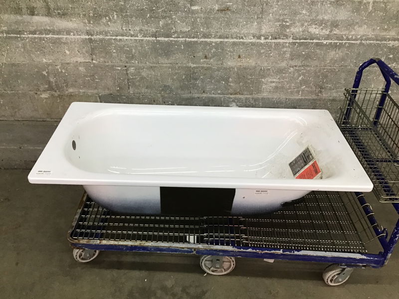 Kaldewei brand, white enameled steel drop-in bathtub. In good condition and doesn't appear to have ever been installed. Needs a wipe down and then it's good to go.