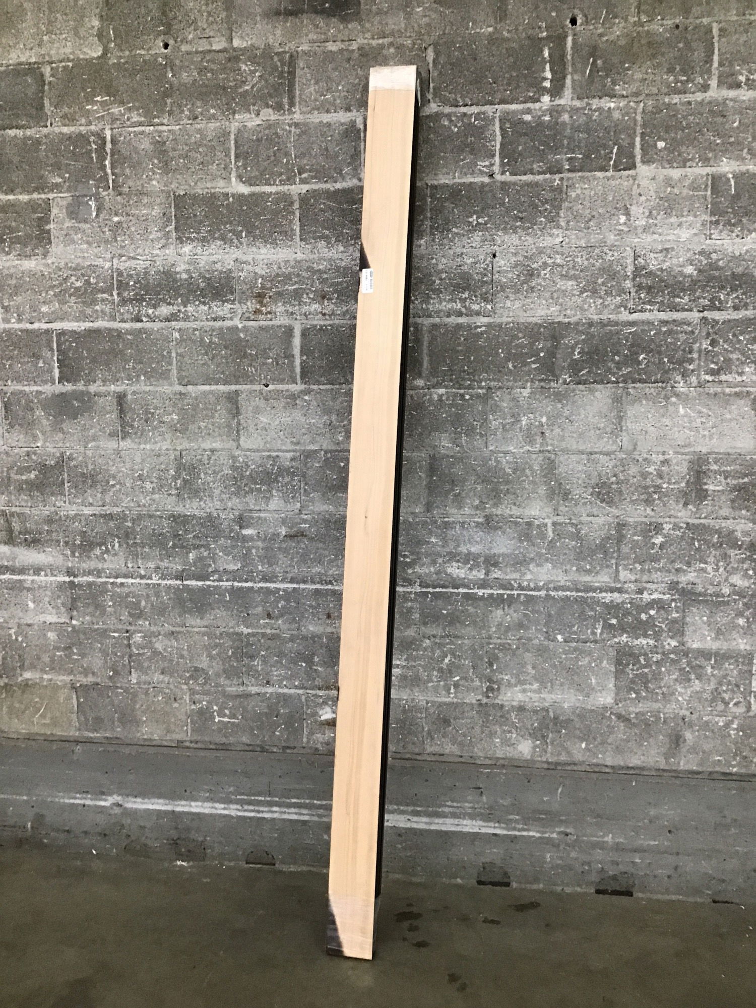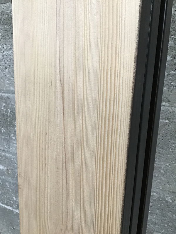 Three pieces of dark (pretty much black) stained clear hemlock. You can still see the grain through the stain. "Back" side is unfinished. One piece is ~96", and the other two ~ 101".