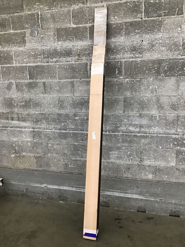 Six pieces of dark (pretty much black) stained clear hemlock. You can still see the grain through the stain. "Back" side is unfinished. There are two pieces at 72", two at ~75", one at 80" and one at 97".