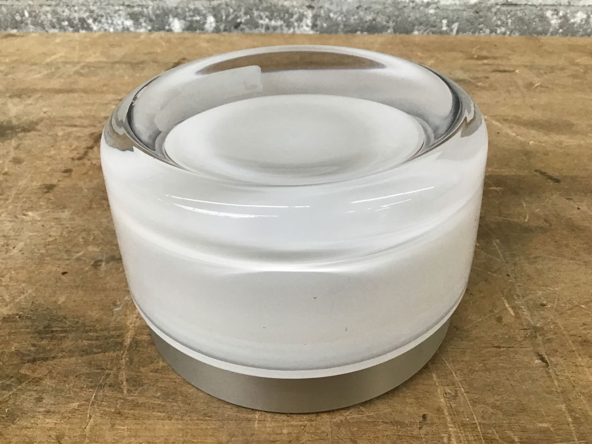 Here we have a flush mount celling light by RBW called Copia flush mount. A unique and modern light to add a touch of style to your home. LED bulb, comes with a half opaque and half clear dimpled shade. This retails new at $394.20.