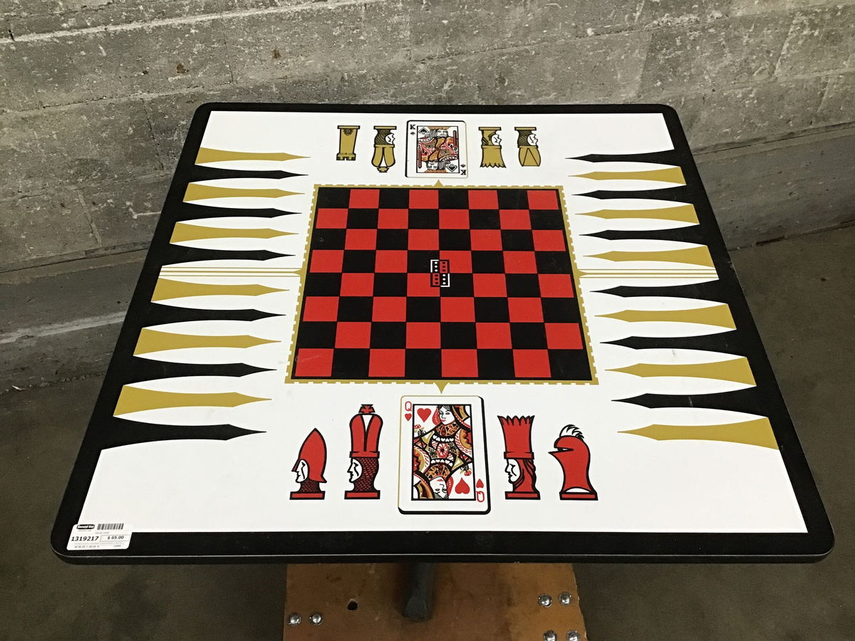 Laminate top and a steel base in good condiiton, ready for game night.