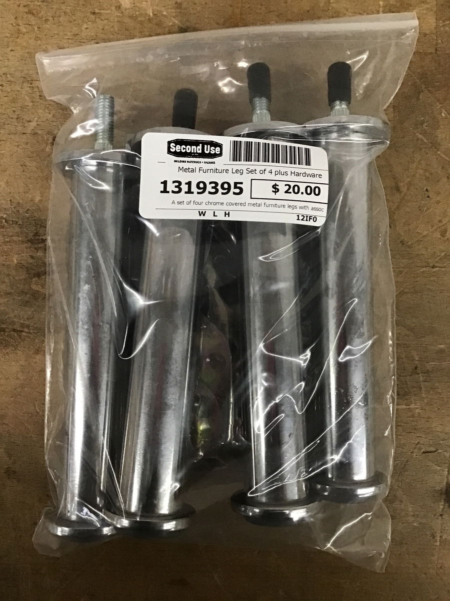 A set of four chrome covered metal furniture legs with associated hardware. Great for anyone needing to finish a DIY project.