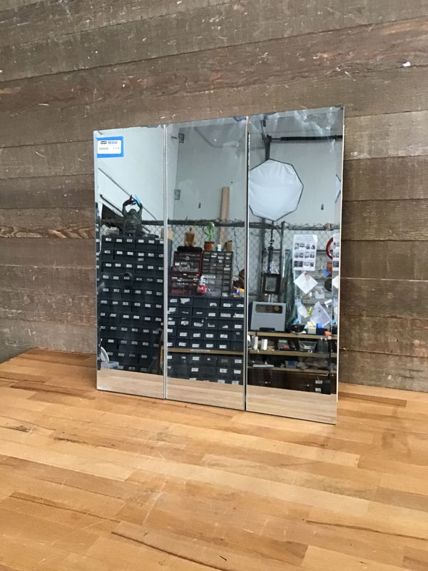 Mirror glass has some chips in some of the corners and needs a good wipe down. Otherwise in good useable shape.