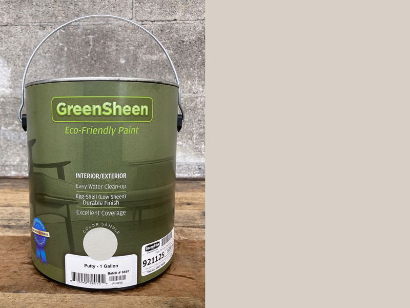 One gallon of Putty GreenSheen house paint. GreenSheen paints are made from 100% reclaimed materials. They process the paint that Washington residents recycle with the PaintCare program! GreenSheen is a quality eggshell finish paint that is available in a wide range of colors and costs much less than traditional paints. Their reclamation and cleaning process produces an interior/exterior house paint that is naturally lower in VOCs and provides exceptional coverage and durability. Check out our full selection of 18 different colors, available in one or five gallon sizes. Learn more about GreenSheen here. Please note, this is a bulk item and cannot be placed on hold.