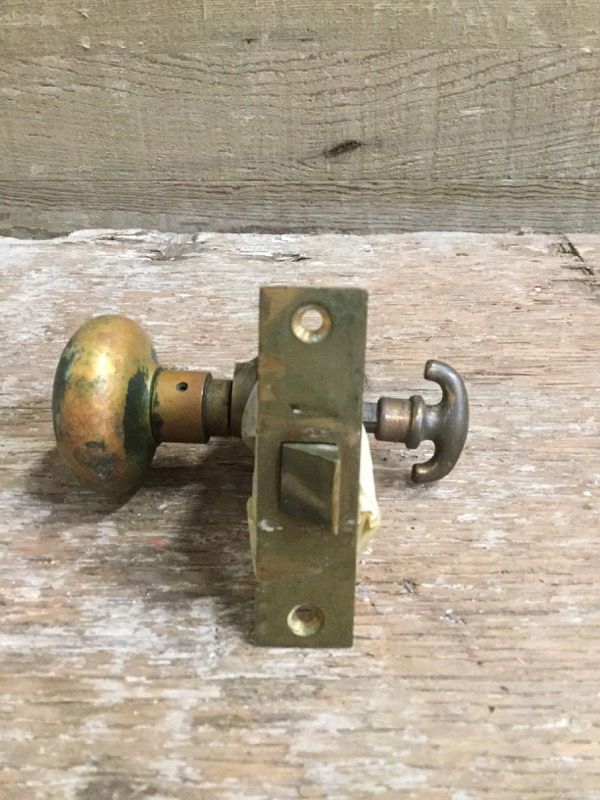 Vintage brass interior knobset salvaged from a local seminary, dimensions reflect mortise box. This is a bulk item, so no hold please. Photos are representational.