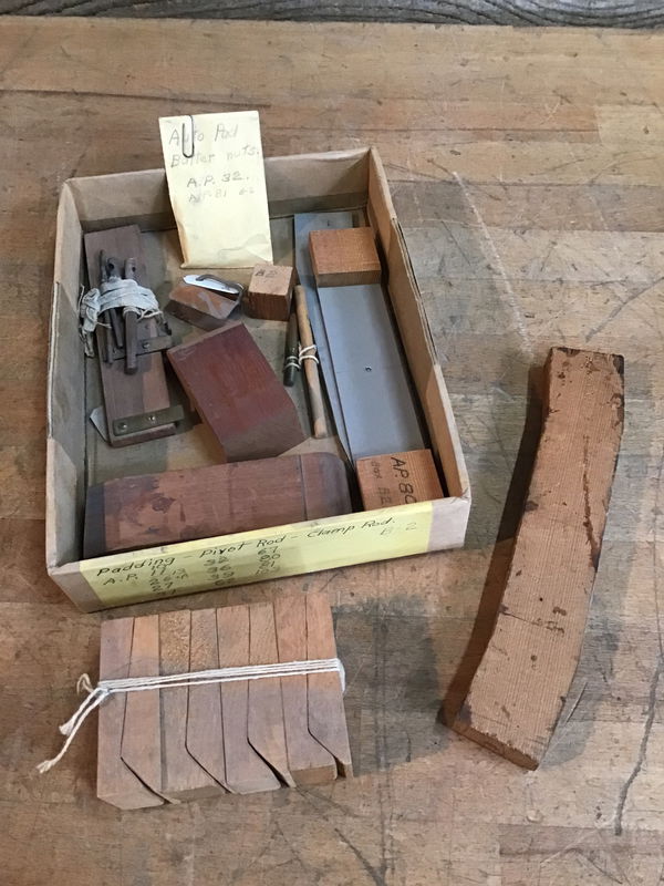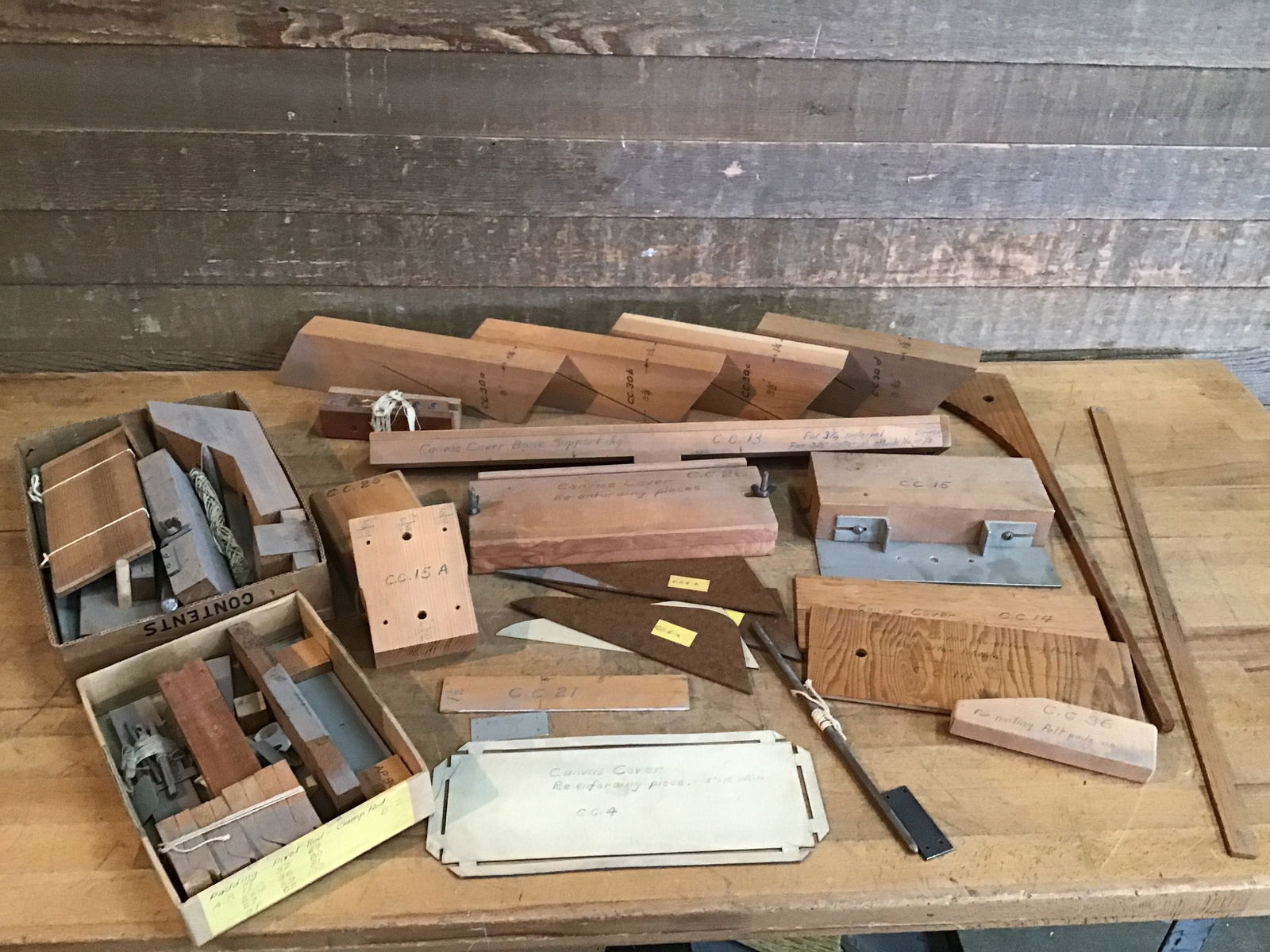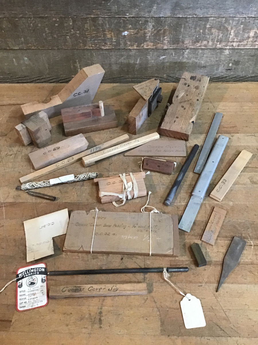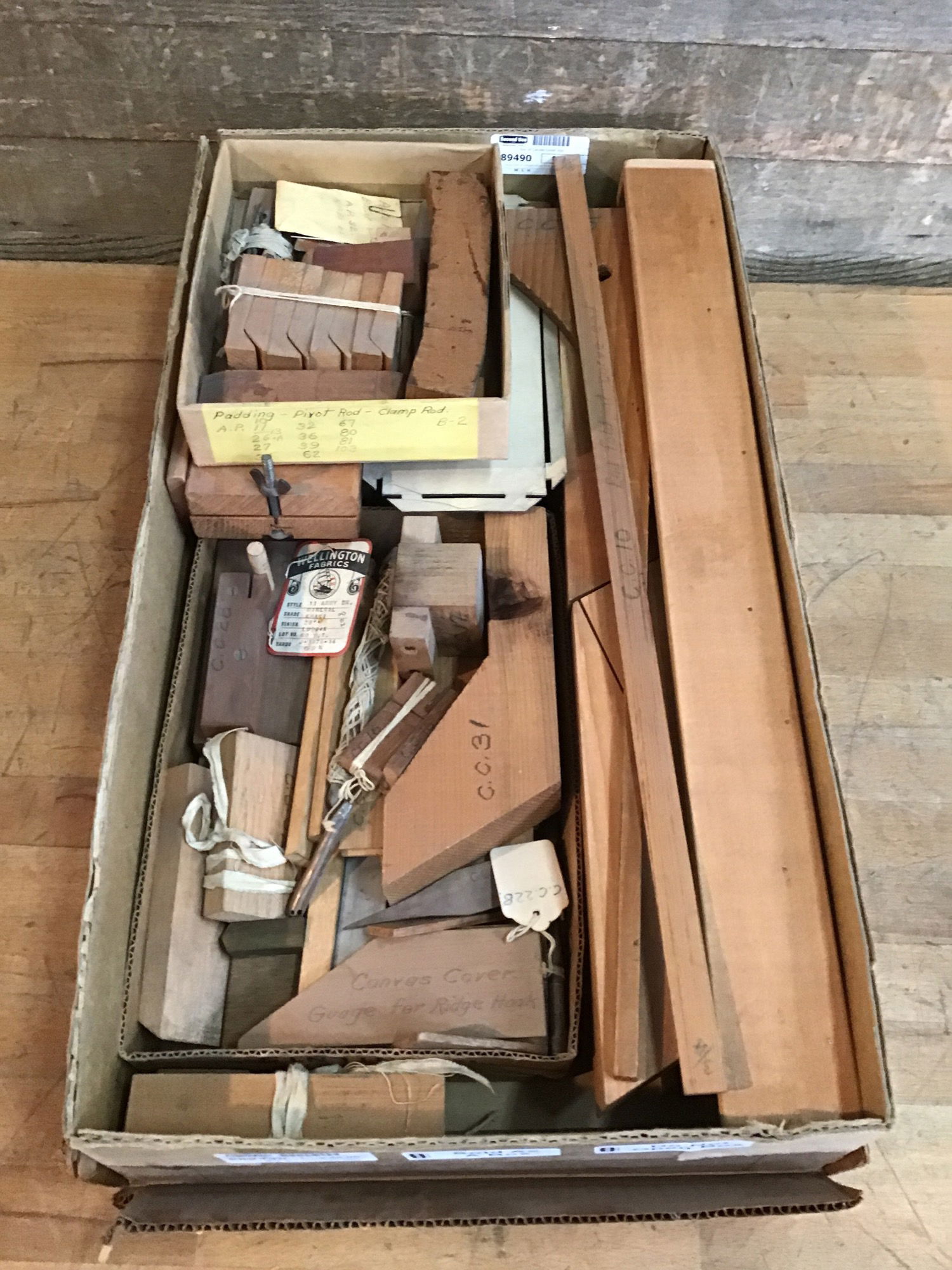 This is a box of vintage canvas cover jigs, from the Willits Brothers original shop. Looks like there are some nice little soft and hard wood chunks in here, great for projects other than boats!