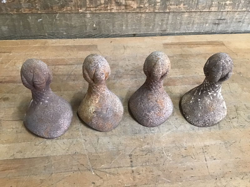 4 cast iron tub clawfeet with a consistent rust through all feet, should be fairly easy to clean up with a bath in evaporust.