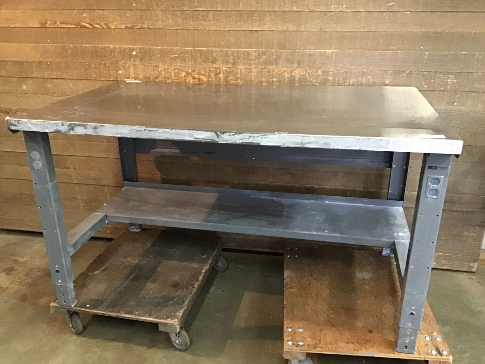 Nonmagnetic stainless steel topped work bench by Uline. Great workshop table.