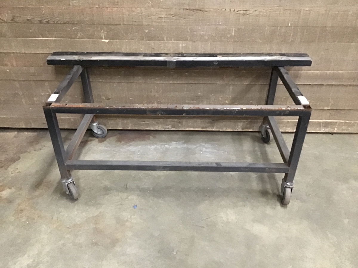 Tubular steel cart. Rolls smoothly and feels solid. Ready to get a top installed.