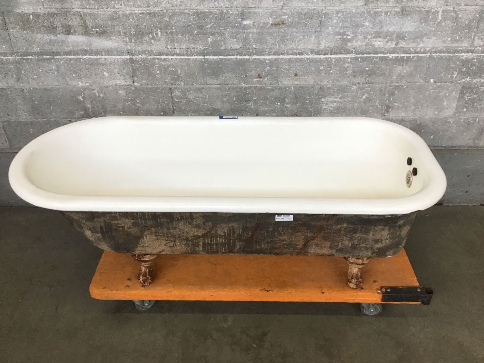 Stunning and exceedingly rare and sought after, 6ft clawfoot bath tub. This gem has all 4 feet, has never been refinished, and retains quite a bit of it's original luster. It's sides could use a paint job if you wanted to be fancy, or keep it rustic and leave it as is. If you're tall or like to bathe with a companion, this is the find of the century!