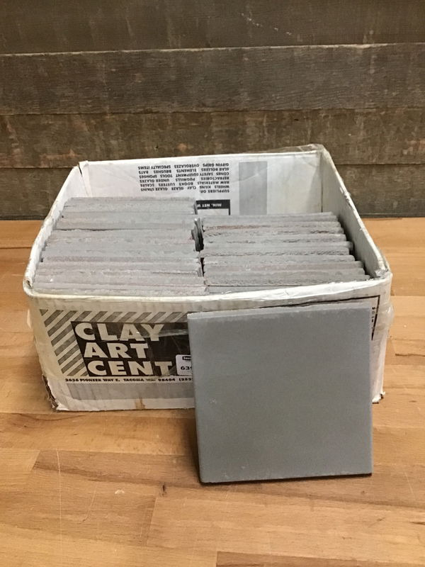 Box of thirty-two 6"x6" locally handmade matte-grey tiles