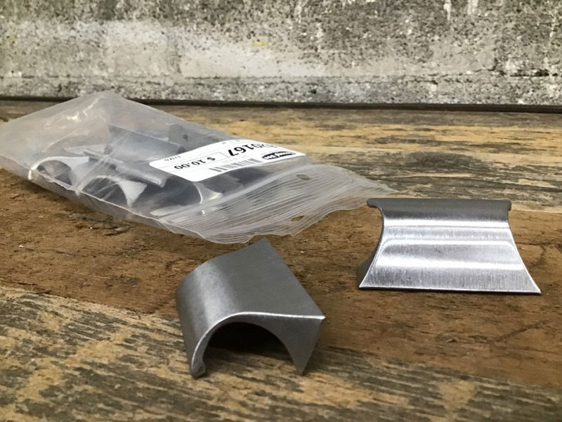 Set of 10 matching modern brushed nickel finish pulls with nice crisp lines. Screw holes are 1" apart. Base of each pull that would touch your surface is 2" by 1/2".