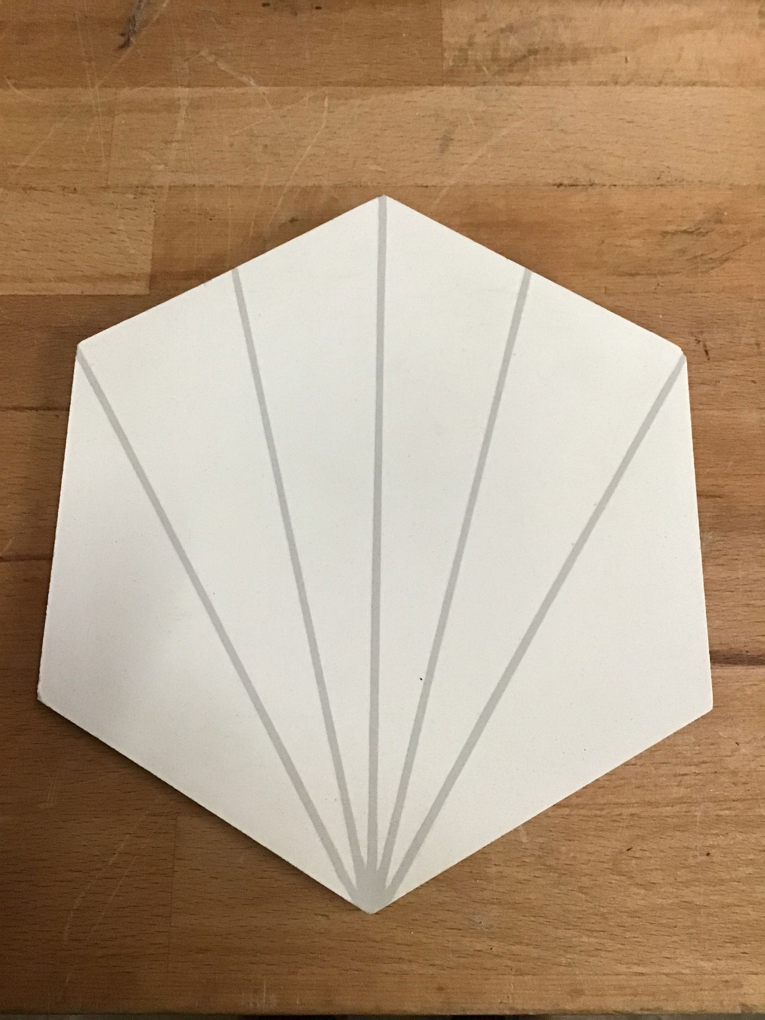 Box of cement hexagon tiles from Cement Tile Shop in style "Starburst IV." These retail new for $6/tile or $72/box. 12 tiles per box covers 4.44 sq. ft.