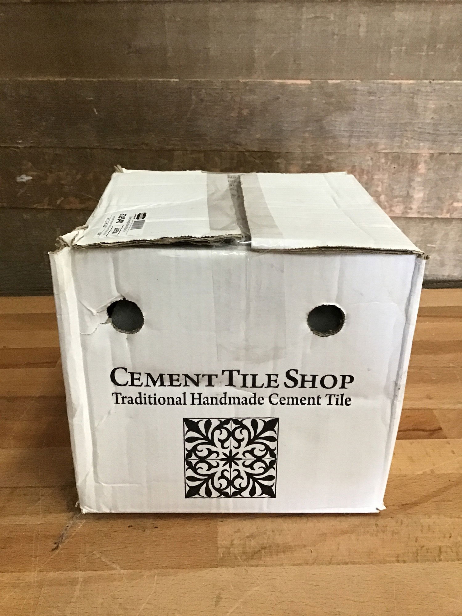 Box of cement hexagon tiles from Cement Tile Shop in style "Starburst IV." These retail new for $6/tile or $72/box. 12 tiles per box covers 4.44 sq. ft.