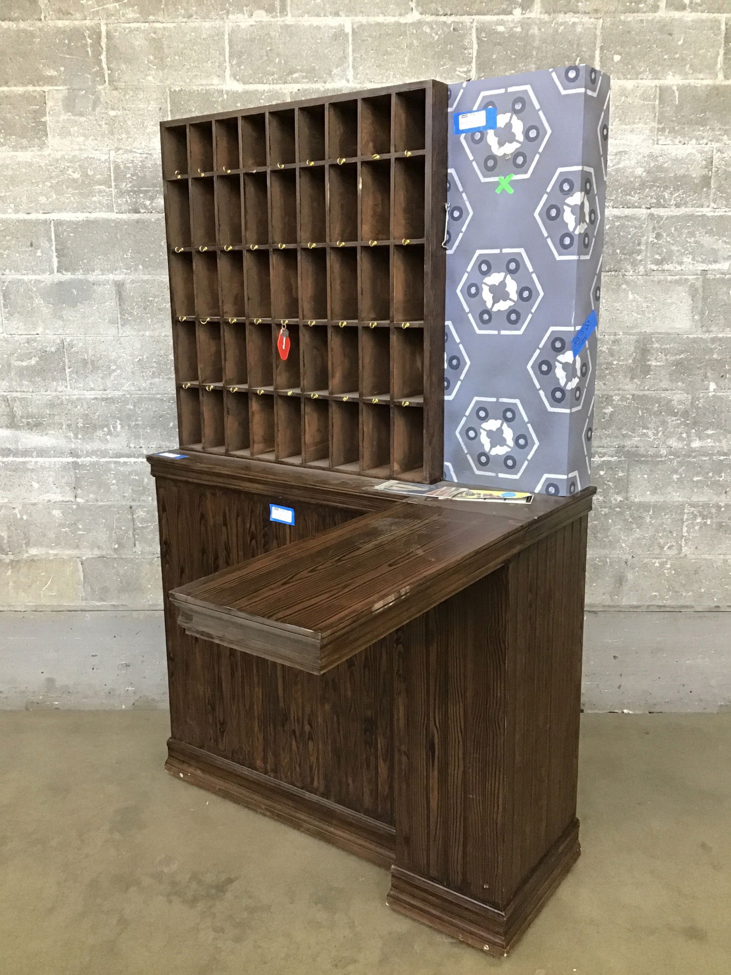 Prop from the 5th Ave Theater from "Catch Me If You Can". It is a check in desk but, you can give it a new purpose. It would make a great conversation piece. For the empty nesters w everyone coming to visit or stay a great way to keep everyone organized.