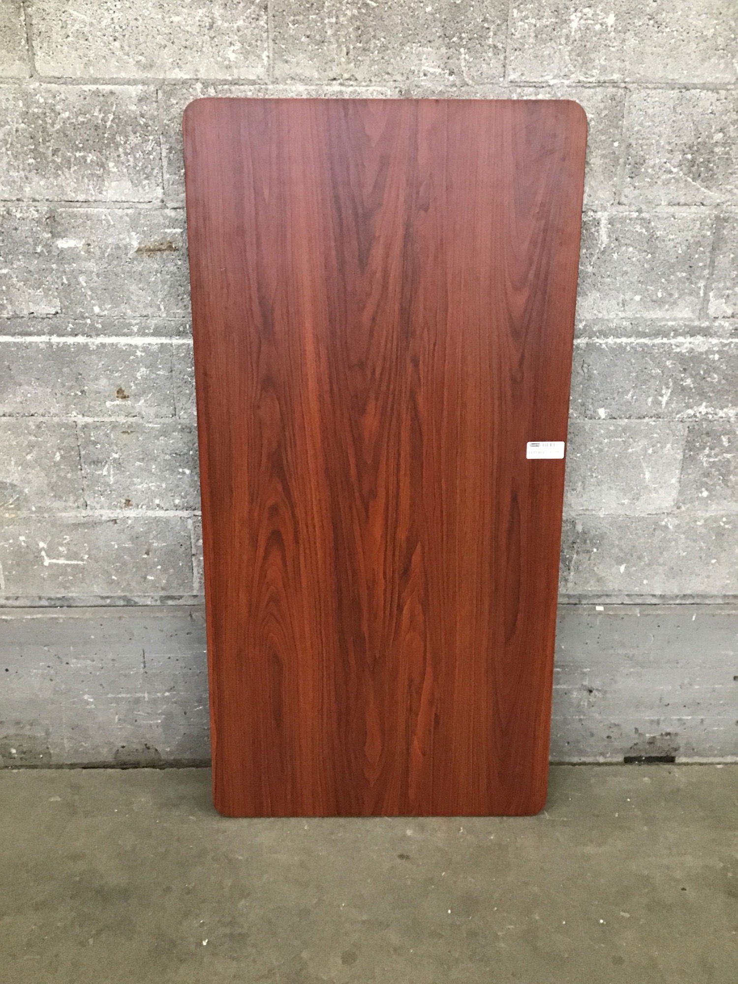 Ideal for replacing a worn-out desk surface, this tabletop features a stained cherry photo finish and an easy-to-clean laminate surface. Subtle wear.