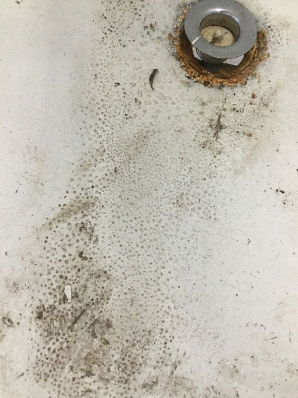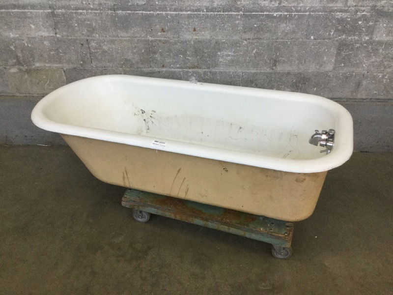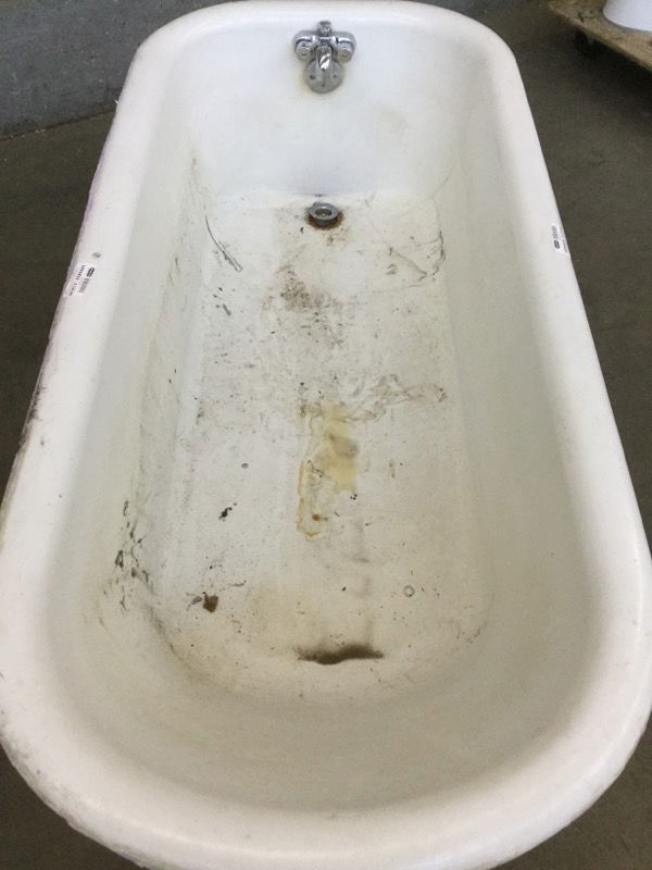 Garden-grade clawfoot tub, no feet. Bottom finish has significant pitting, and there are a few chips.