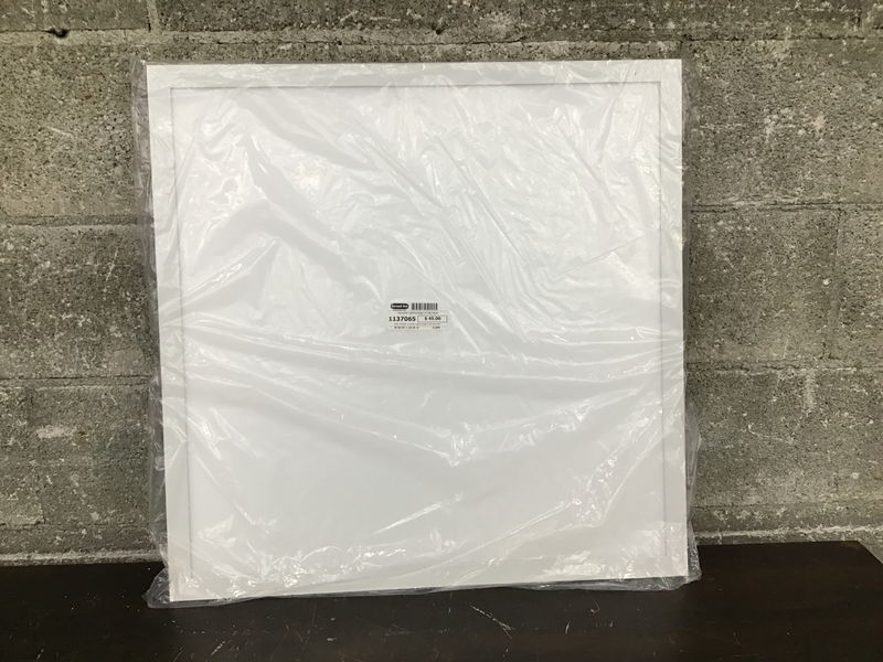 Never installed, Columbia Lighting edge lit flat panel with matte white finish and smooth frame to lens transition and lumen switchable technology. Includes assembly and installation instructions.