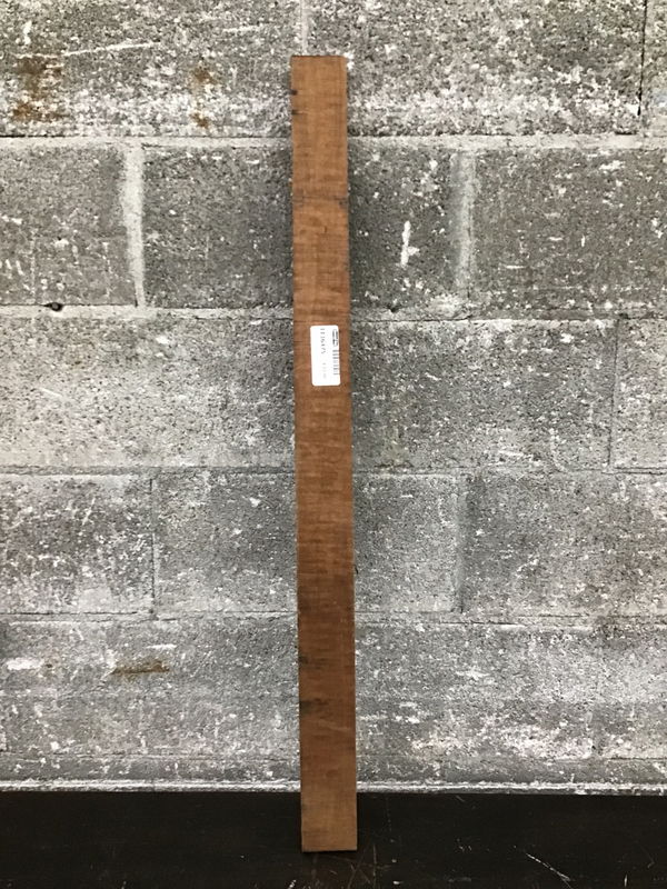 This Curly figured Carbonized/Roasted Maple was off cut stock from material used by famous electric guitar manufacturers. Really stunning color and figure. The process involves gradually heating the wood up to temperatures of greater than 160 degrees Celsius in special heat chambers made of stainless steel under anoxic conditions. The heat removes organic compounds from the wood cells, changing both the physical and chemical make-up of the wood. The process is natural and chemical free. It darkens the wood to a beautiful rich chocolatey brown color whilst still showing the gorgeous grain and figure of the underlying wood. The thermally modified wood is more dimensionally stable, but the process does reduce bending strength and make the wood a little more brittle.