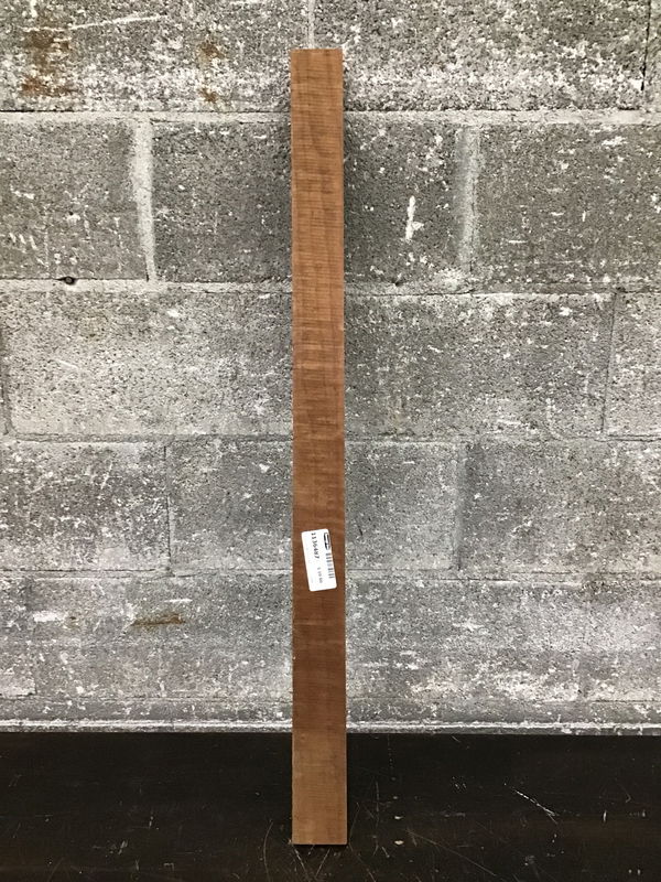 This Curly figured Carbonized/Roasted Maple was off cut stock from material used by famous electric guitar manufacturers. Really stunning color and figure. The process involves gradually heating the wood up to temperatures of greater than 160 degrees Celsius in special heat chambers made of stainless steel under anoxic conditions. The heat removes organic compounds from the wood cells, changing both the physical and chemical make-up of the wood. The process is natural and chemical free. It darkens the wood to a beautiful rich chocolatey brown color whilst still showing the gorgeous grain and figure of the underlying wood. The thermally modified wood is more dimensionally stable, but the process does reduce bending strength and make the wood a little more brittle.
