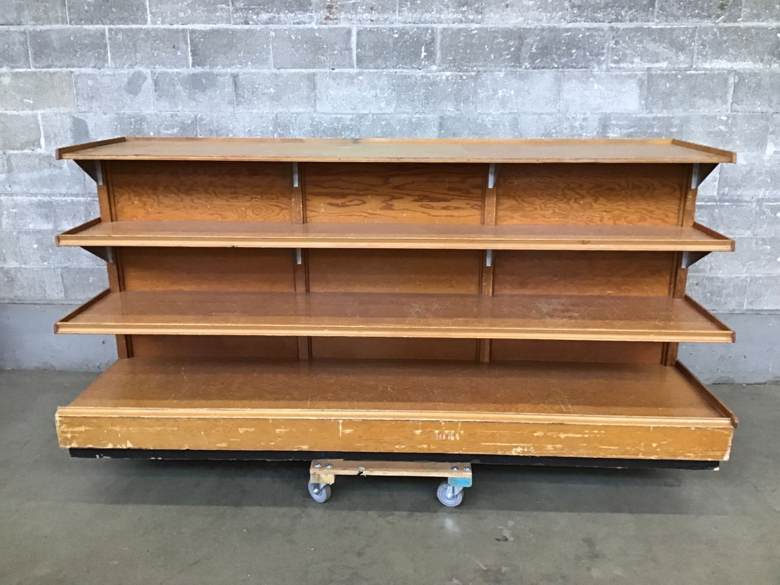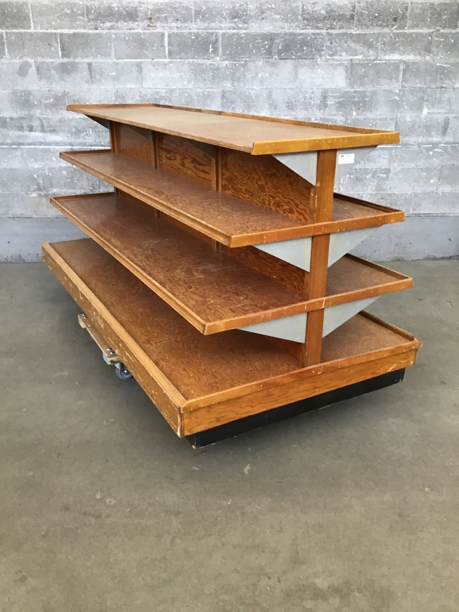 Grand vintage retail display constructed from solid fir and facegrain fir plywood that looks really cool. It's a hefty piece but it would be an excellent shop companion.