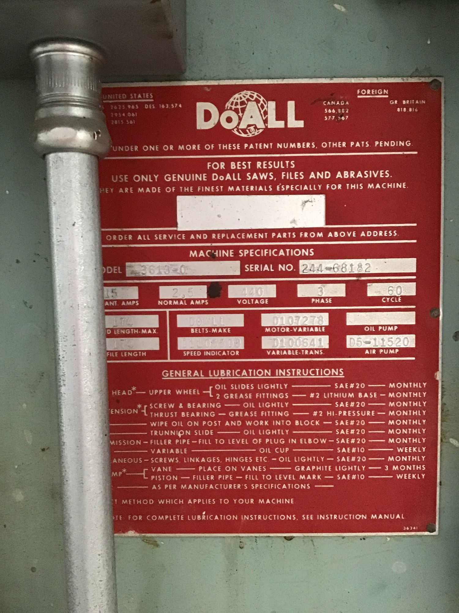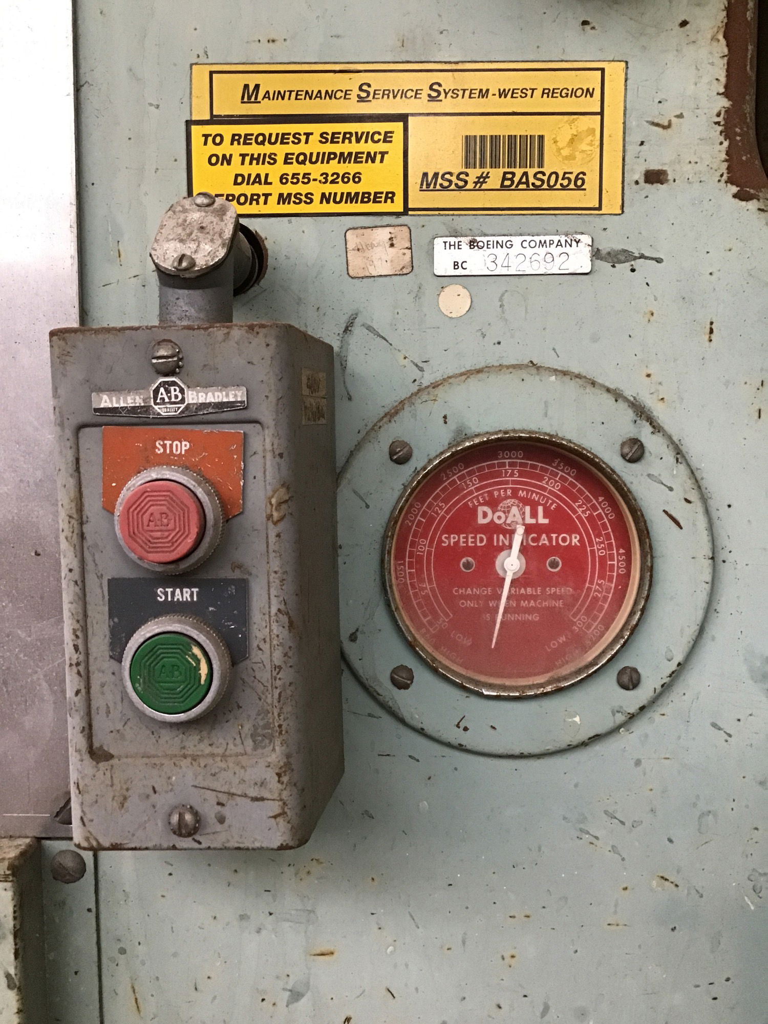 Absolute unit of a bandsaw with a great patina and so many cool warning labels it might as well be playing the Shaking Hands With Danger bass riff. Would make for a super sweet conversion into a bar or room divider. Takes three phase power, so we were unable to test in house. USE AT YOUR OWN RISK!