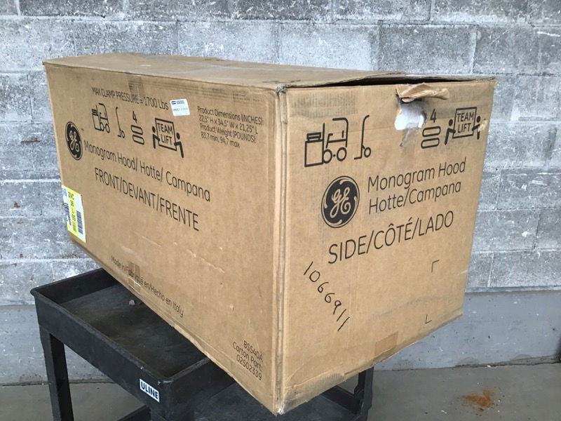 Monogram custom hood insert that is still in its box and appears to have never been installed. Missing some of the parts and hardware, but replacement parts appear to be easy to come by online. With a little legwork this could be a great start to your kitchen remodel!
