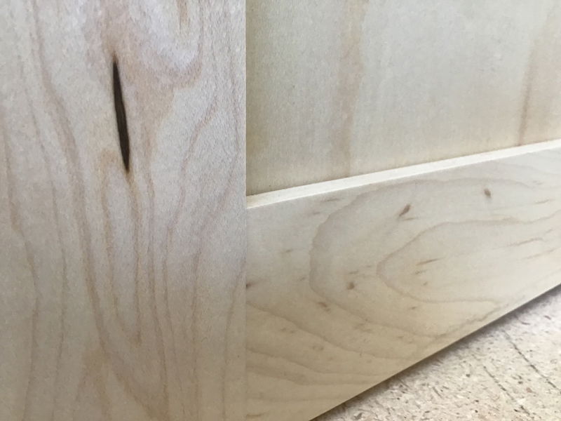 New shaker style upper corner cabinet with a clear finished solid maple face, soft close hardware, and two adjustable shelves behind the doors. This is a well constructed cabinet with a timeless look - a great option for giving your kitchen or laundry room a little refresh! Width listed is for the box - each door measures 12"W.