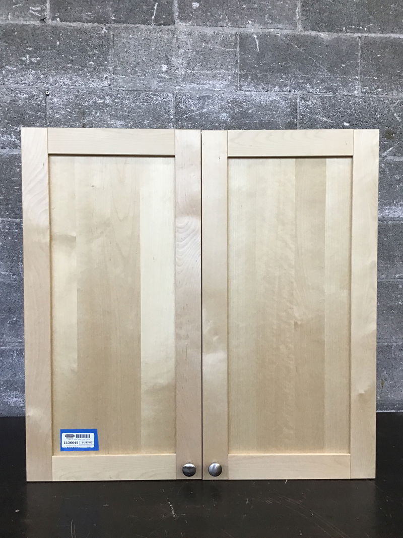 New shaker style upper cabinet with a clear finished solid maple face, soft close hardware, and one adjustable shelf behind the doors. This is a well constructed cabinet with a timeless look - a great option for giving your kitchen or laundry room a little refresh!