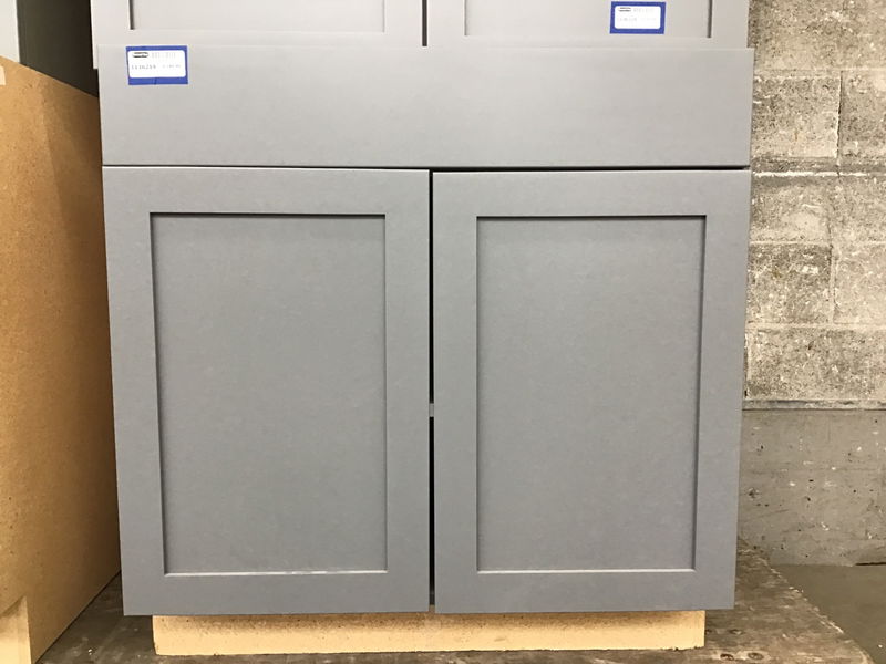 Brand new shaker style base cabinet with a factory dolphin grey paint job, soft close hardware, and a full extension, dovetailed drawer. This is a well constructed cabinet with a classic look - a great option for giving your kitchen or laundry room a fresh look. Does your remodel need a bit more? Check out other items from this job for matching cabinets and more!