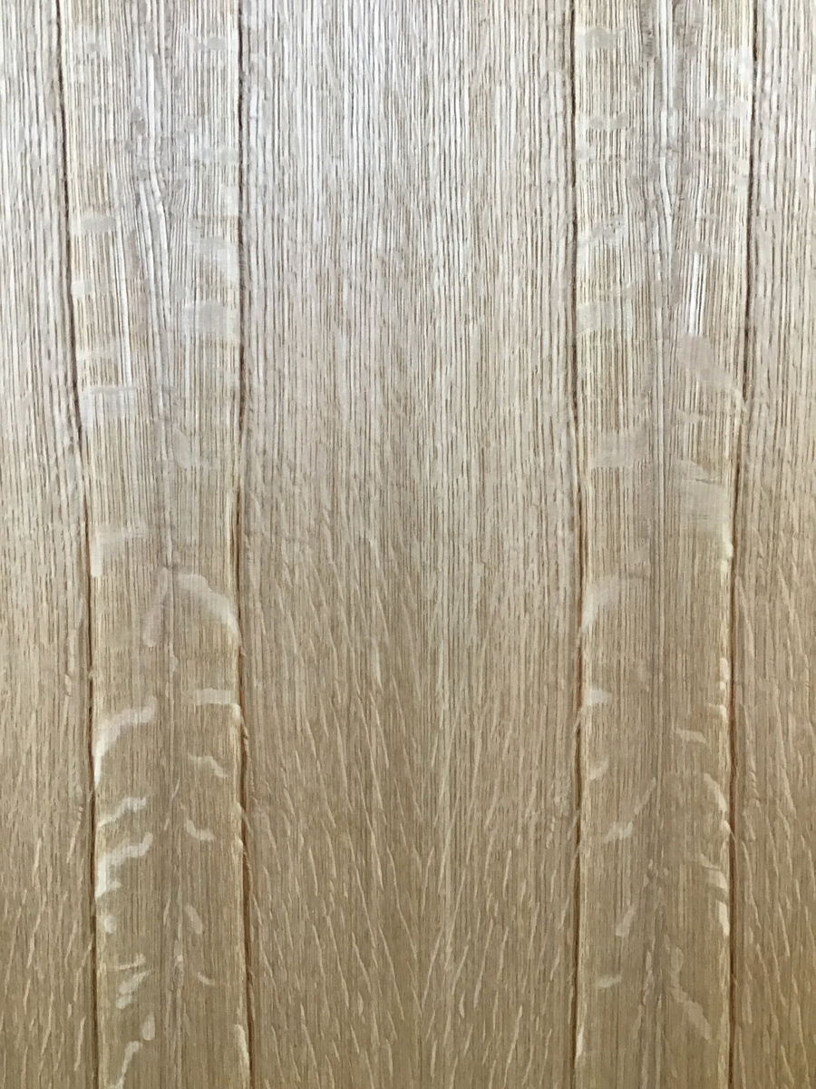 3/4" thick sheet of oak plywood. Beveled edge. Some drill holes.