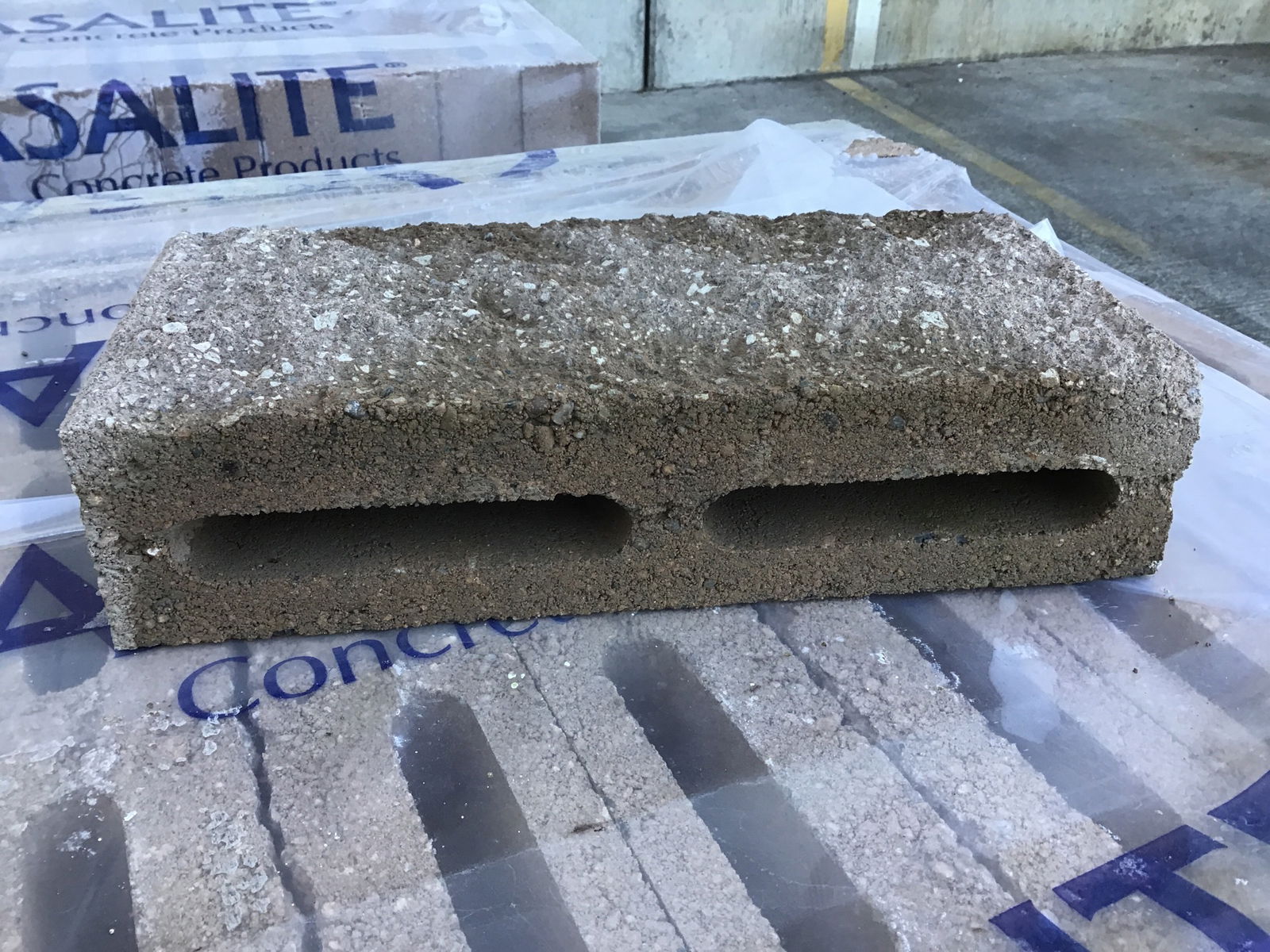 Pallet of 120 pieces of textured aggregate faced concrete block that could build a wall, garden bed or retaining wall. These are Basalite brand "4816 S1F STD MWR Goldenrod" blocks. Must have been a misorder. From what we found, these retail for ~$5 each, wholesale ~$3 each. A little out of season for landscaping, so we're selling them cheap. Each block weighs ~22 pounds x 120= 2640 pounds + 100 pounds for the pallet= 2740 pounds. Forklift load only or we will sit the pallet behind your vehicle for you to hand load. Photo may be representational.