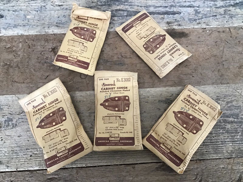Set of ten matching polished chrome Amerock brand plated hinges for 3/8" offset doors that are still in their original packaging and include the original fasteners! 2 5/8" wide.