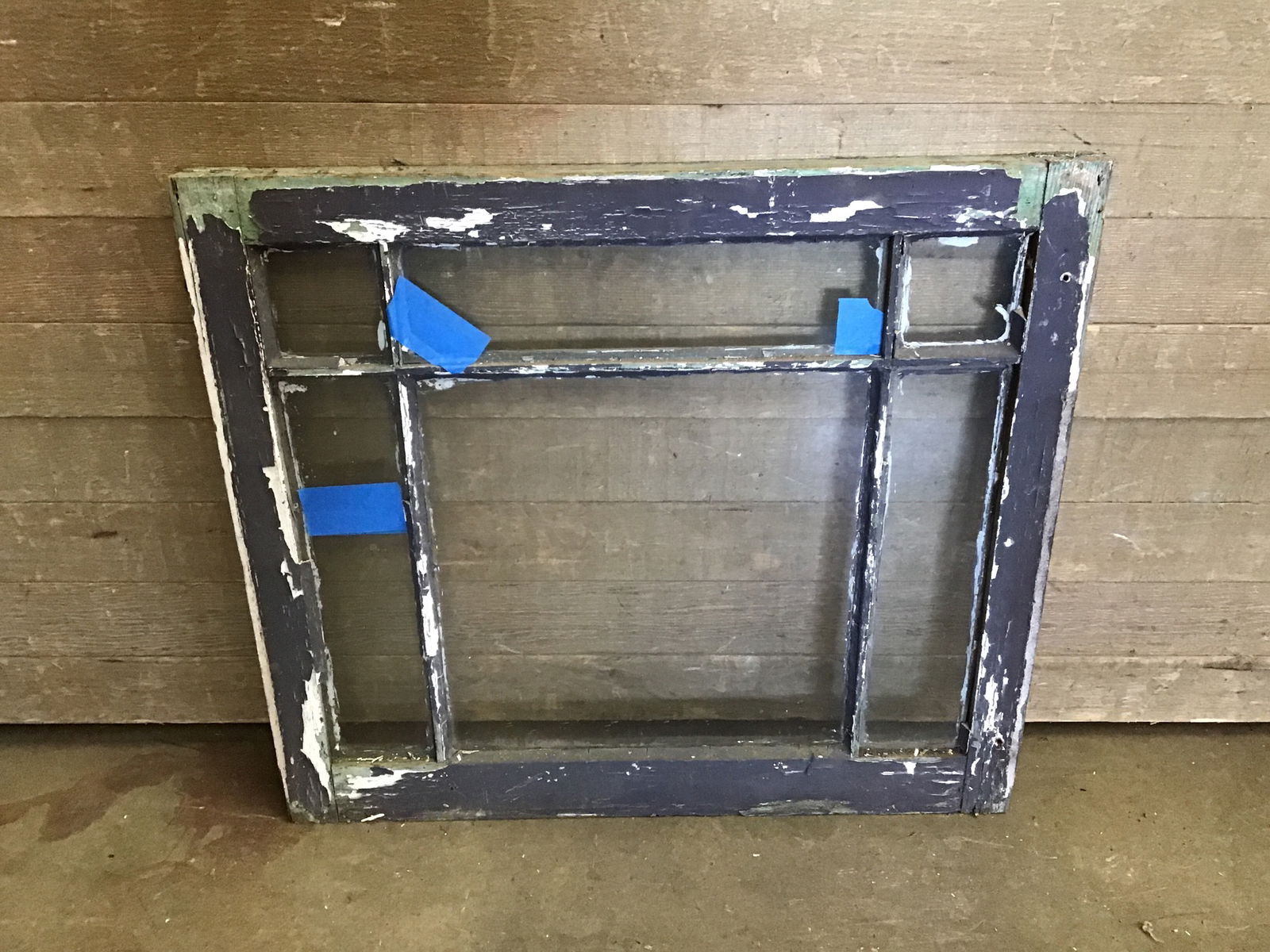 Vintage six-pane wood window sash, two of the lites have a crack in the glass (price reflects)