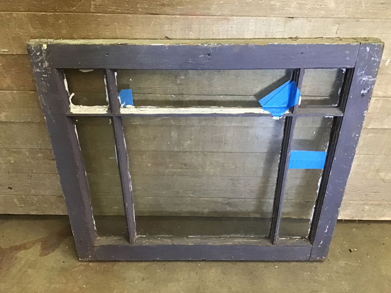 Vintage six-pane wood window sash, two of the lites have a crack in the glass (price reflects)