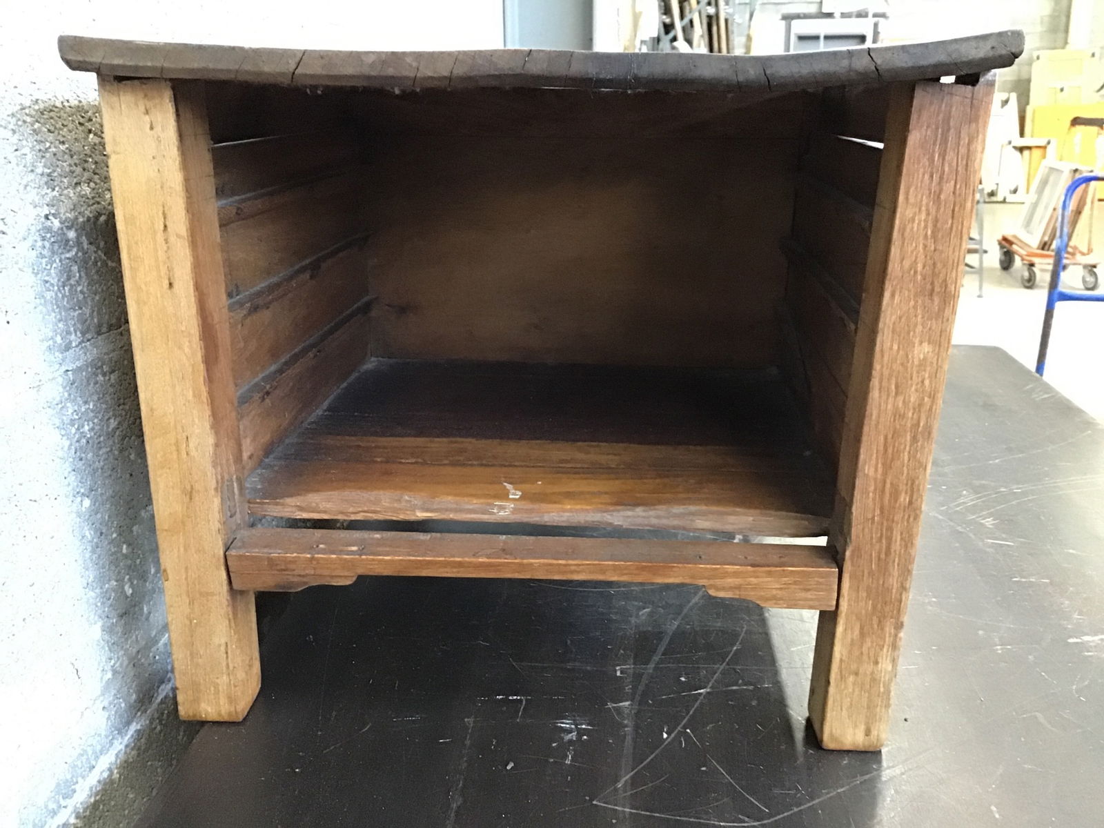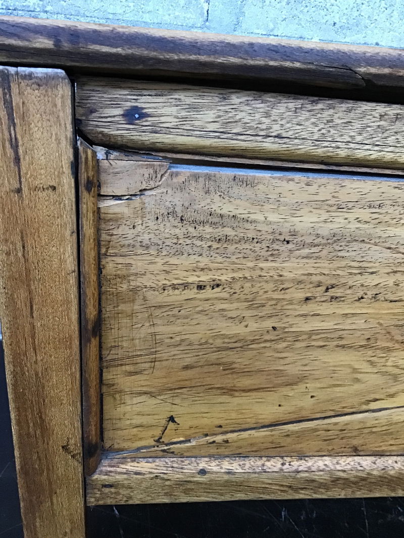 This little tropical hardwood side table is made from a tropical hardwood and is in need of some TLC. It looks like there were three drwars on the side and are no longer with the table, and the piece itself will need shoring up and parts more securely attached.