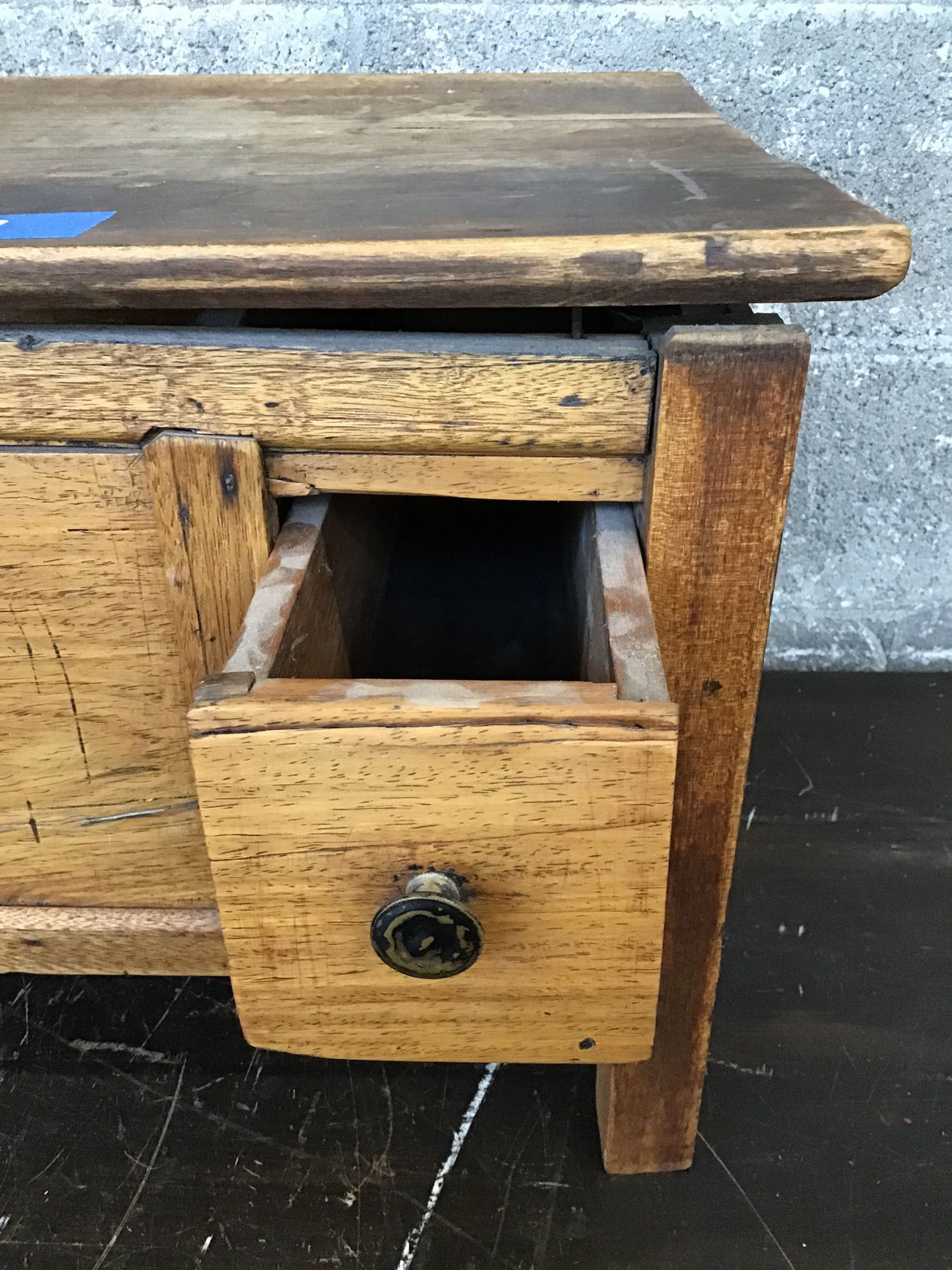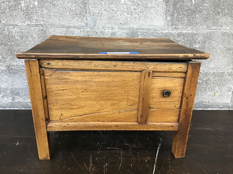 This little tropical hardwood side table is made from a tropical hardwood and is in need of some TLC. It looks like there were three drwars on the side and are no longer with the table, and the piece itself will need shoring up and parts more securely attached.