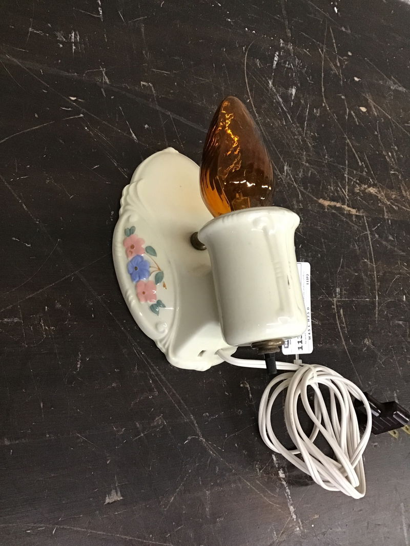 Rewired, this vintage wall sconce features ceramic construction, soft floral details, a glossy finish and a single socket. Appeared to function when tested.