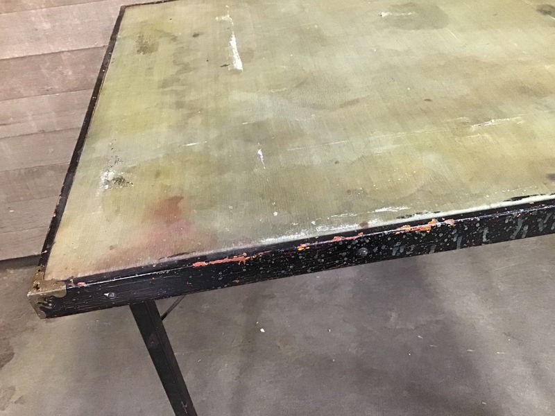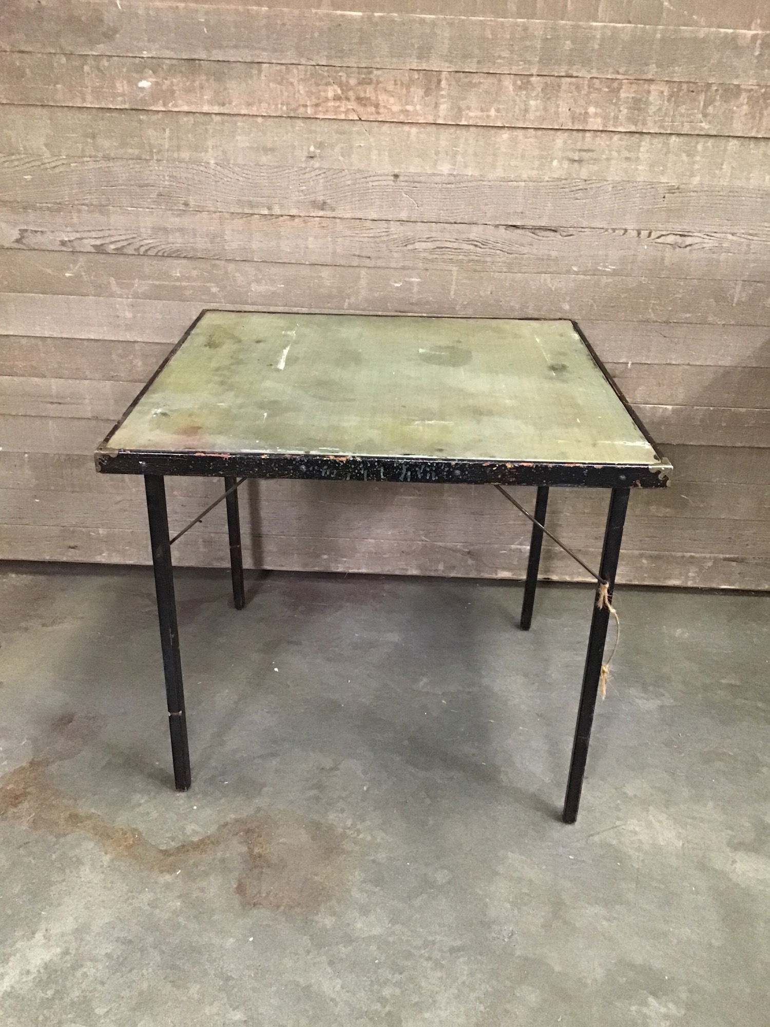 Vintage ET Burrowes Feather Weight folding table. Most of these were made between 1870 and 1930, this one has a canvas liner on the top and is splattered and chipped to glorious vintage perfection. Still perfectly functional, too!
