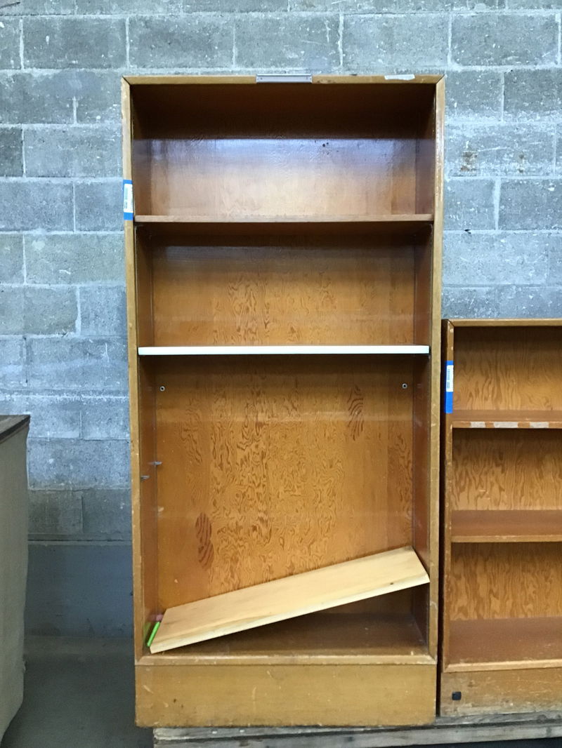 Solid fir construction with one fir and two birch shelves make this bookcase an excellent addition to any home! Some of the varnish has worn away, particularly on the top, but still a sturdy unit. Will need a few shelf clips.