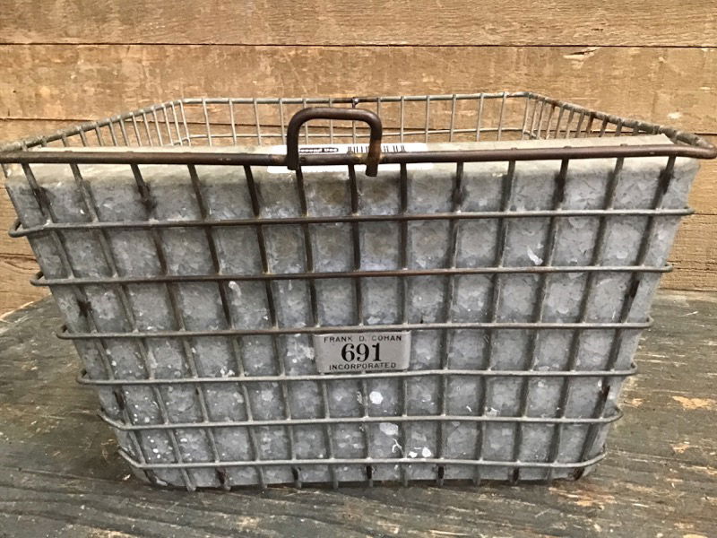 Cool vintage locker basket made by Frank D Cohan Inc. were stripped out of a local Seattle middle school by our field team. Constructed out of galvanized steel wire and a solid steel face plate this basket is perfect for storing tools, art supplies or whatever your heart desires.